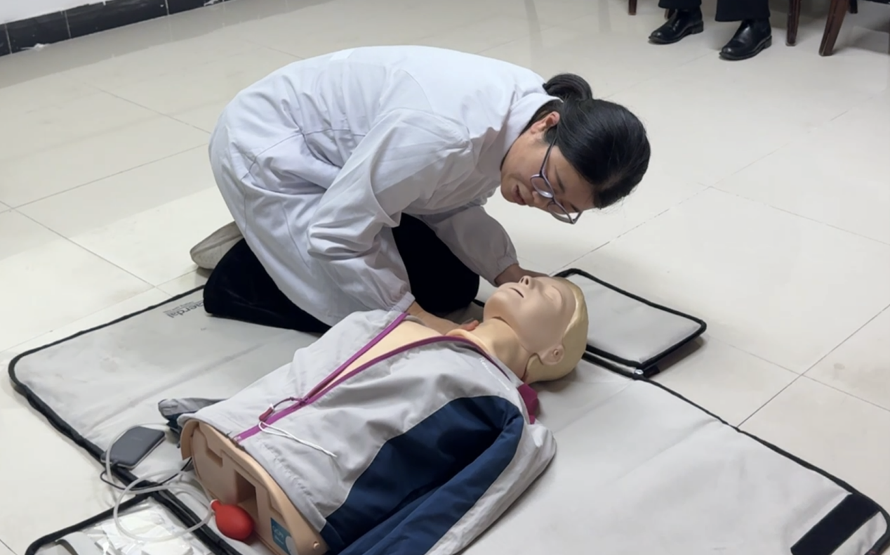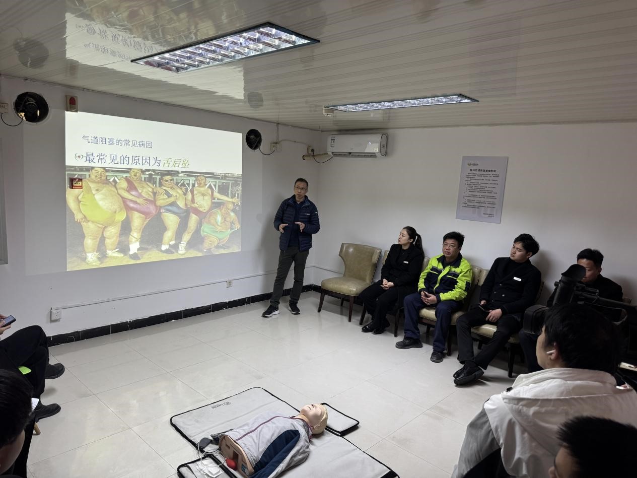 培訓過程中,南通三院心內科顧建國主任帶來了干貨滿滿的理論講解。盛和悅家的物業人員們全神貫注,認真聆聽顧主任關于現場急救種類及基礎知識的細致闡述,逐漸明晰在面對各類突發狀況時應如何迅速且準確地做出判斷與反應。緊接著,心內科崔紅艷護士長進行心肺復蘇(CPR)實操演示,其專業嫻熟的動作令在場人員印象深刻。盛和悅家的物業人員們踴躍上手實踐,在崔護士長及顧主任的耐心指導下,逐漸掌握了正確的操作要領,每一次按壓、每一次人工呼吸都力求標準規范,不斷糾正與完善自身技能。